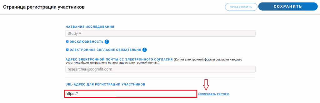 При разработке дизайна исследования можно создать индивидуальный URL-адрес для него. Более подробно об этом читайте в разделе 5 статьи о создании страницы регистрации участников в статье «Как создать исследование».