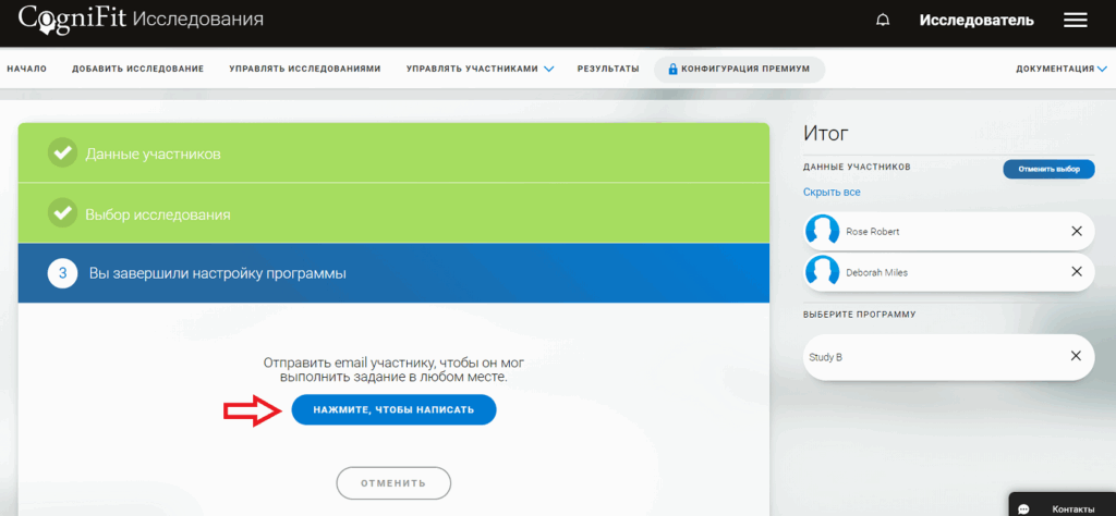 Затем добавьте участника в исследование, следуя инструкциям, приведённым в подразделе 2.4 данной статьи.
