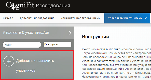 Примечание: Вы всегда можете добавить участников в исследование позже, если они уже зарегистрированы на платформе и не участвуют в другом эксклюзивном исследовании, выполнив действия, описанные в подразделе 2.3 данной статьи.