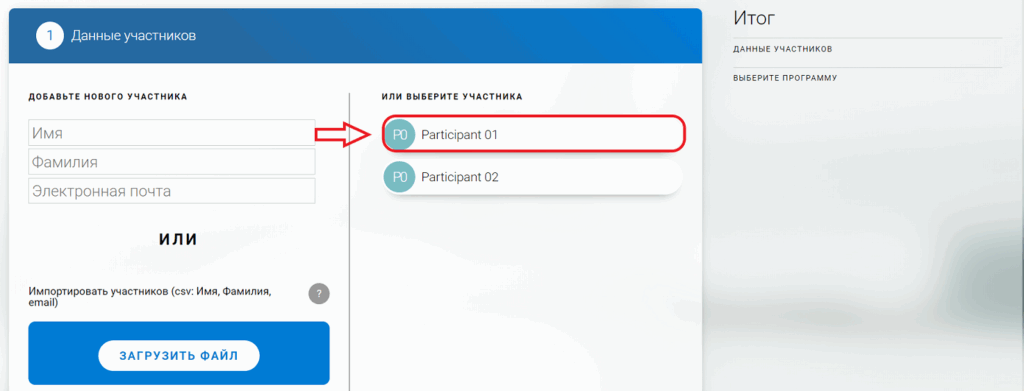 Вы также можете самостоятельно зарегистрировать участника. Нажав на кнопку «Начать сейчас», вы перейдёте на страницу регистрации участника.
