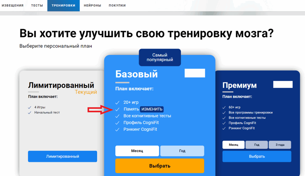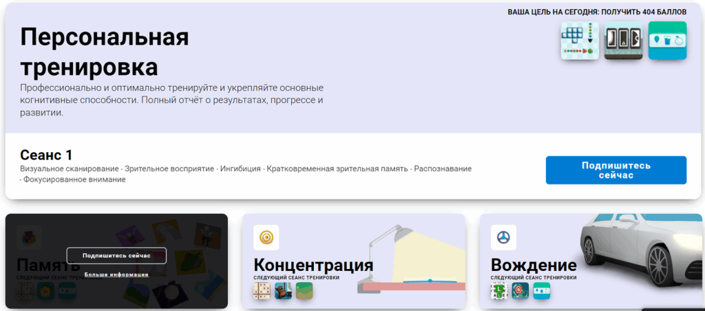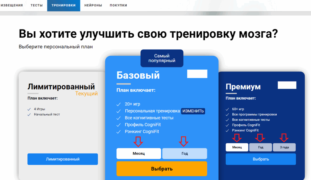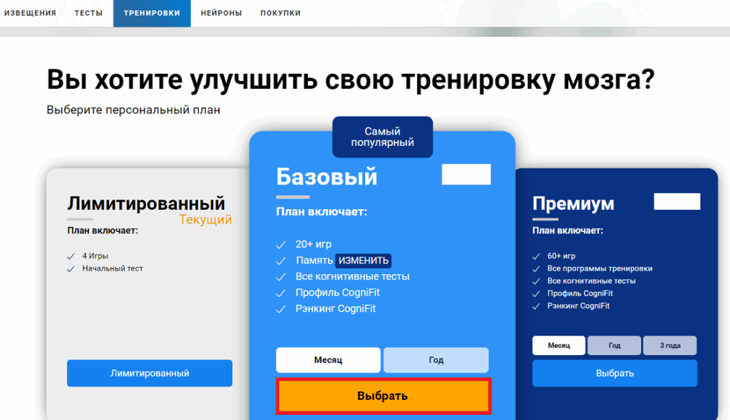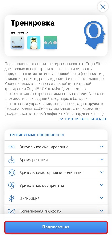 Внимание: Подписка также даёт пользователям доступ ко всем когнитивным тестам. Один и тот же тест можно пройти повторно через 30 дней (при активной подписке).