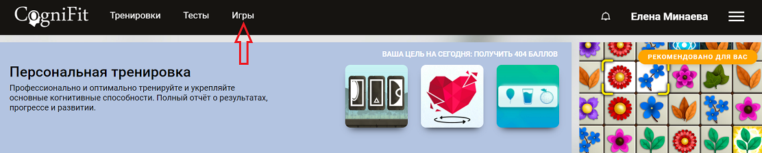 Нажав на опцию «Игры» в верхней части экрана, вы перейдёте в раздел наших игр для мозга.