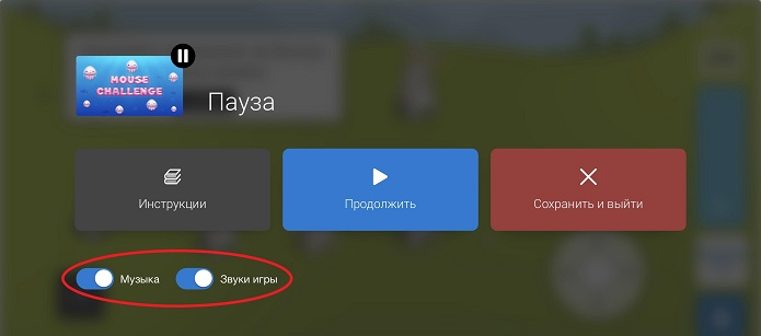1.2 Однократное нажатие на значок звука отключит фоновую музыку игры, однако звуки сохранятся.