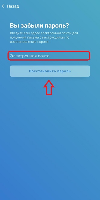 2.3 Введите зарегистрированный в CogniFit адрес электронной почты и затем нажмите на Восстановить пароль.