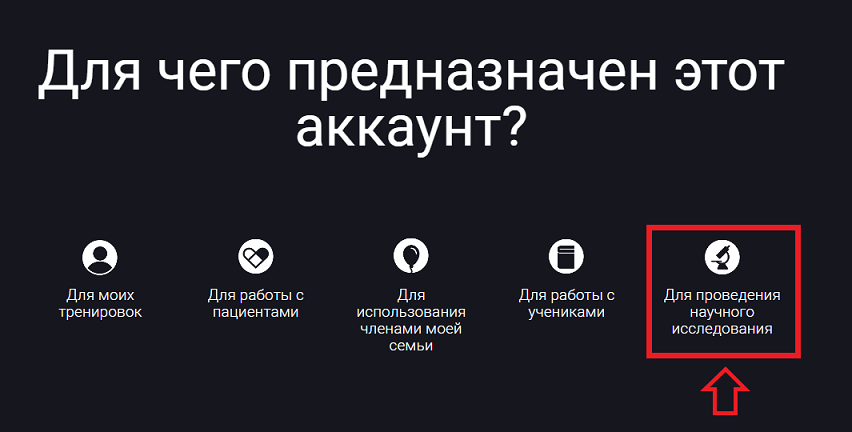 После этого откроется страница регистрации. Выберите опцию «Для проведения научного исследования».