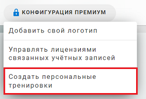 Чтобы создать индивидуальную тренировку, войдите в свой Премиум-аккаунт и на контрольной панели главной страницы перейдите ко вкладке «Конфигурация Премиум». В раскрывающемся меню выберите кнопку «Создать персональные тренировки».