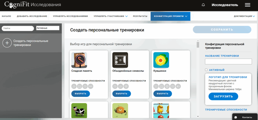 Премиальная подписка для исследователей предоставляет уникальную возможность ознакомиться с играми и упражнениями, включёнными в когнитивные тесты CogniFit.