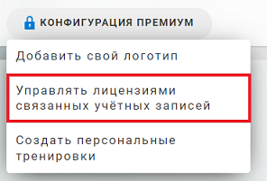 12.1 Для доступа к управлению связанными аккаунтами выберите опцию «Управлять лицензиями связанных учётных записей» в раскрывающемся меню «Конфигурация Премиум» контрольной панели главной страницы вашего аккаунта.