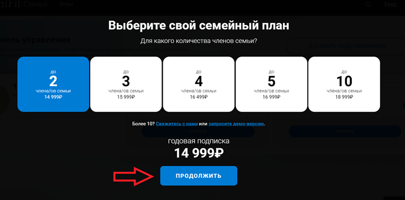 Планы подписки на тренировку: Планы подписки на тренировку для членов семьи являются ежегодными, и в течение этого времени пользователи/члены семьи могут проводить столько сеансов тренировки, сколько пожелает владелец семейного аккаунта (CogniFit рекомендует минимум 2-3 сеанса в неделю, продолжительность каждого сеанса составляет около 10 минут).