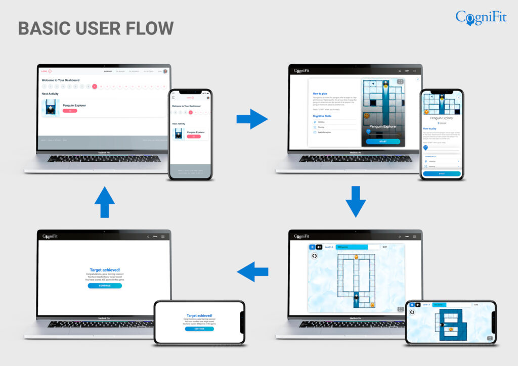 3. the user is automatically signed in into their CogniFit account and performs the designated activity; they might also cancel; in either case the user proceeds to the next step;