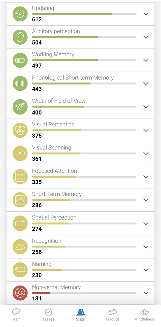 By tapping on the arrow icon next to each Cognitive Skill, you will be able to read a description of that skill.